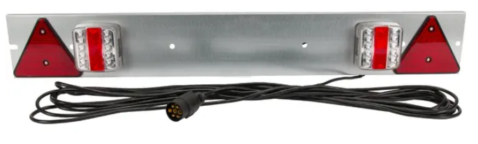Cenovo výhodná kompletná svetelná lišta zadného osvetlenia. Lišta obsahuje galvanizovanú kovovú konštrukciu, LED svetlá, odrazku trojuholníka a kábel.